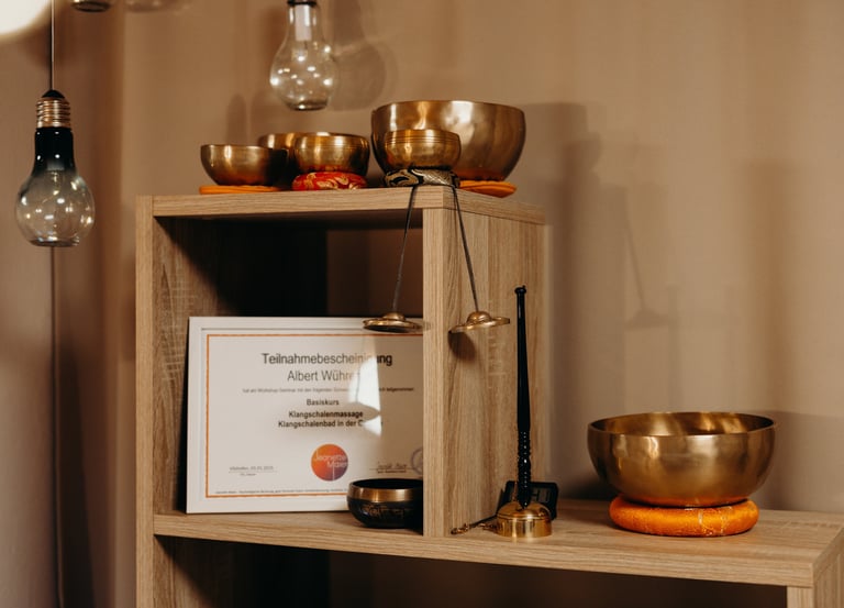 Einblicke in meinen Klangschalentraum und die entspannende Atmosphäre.